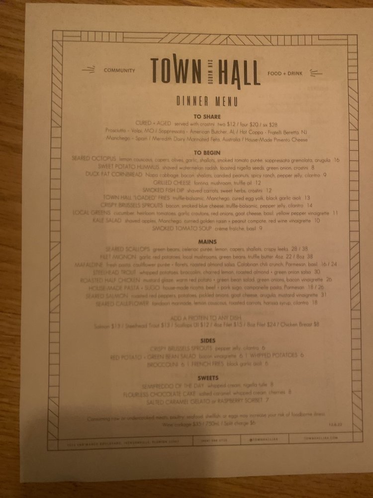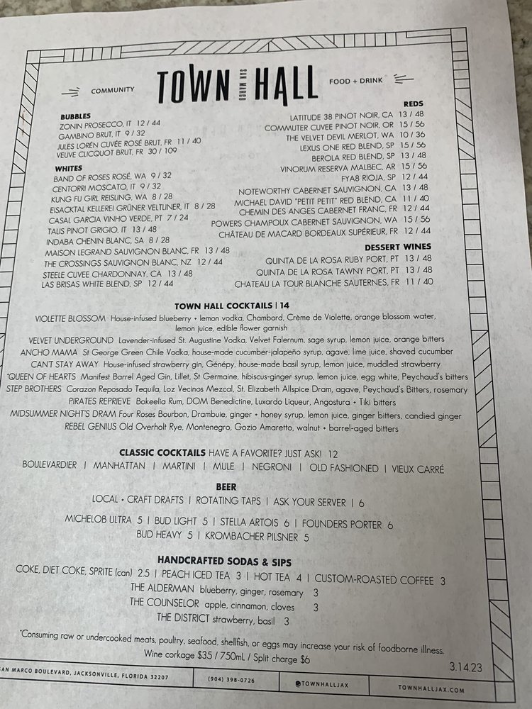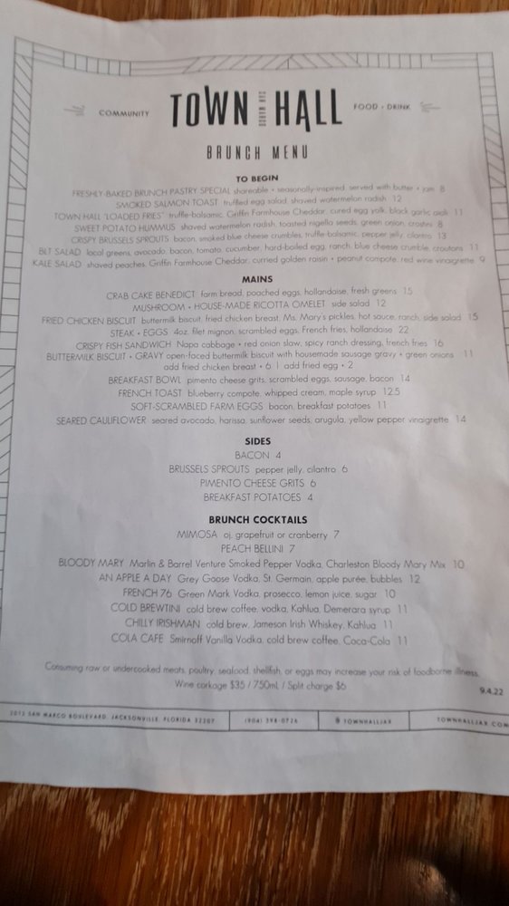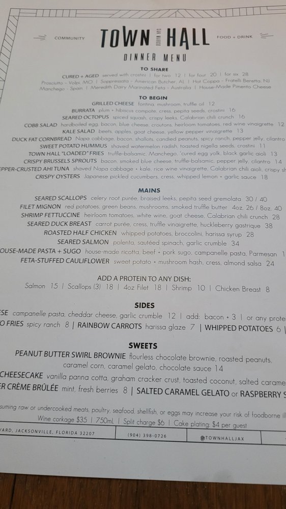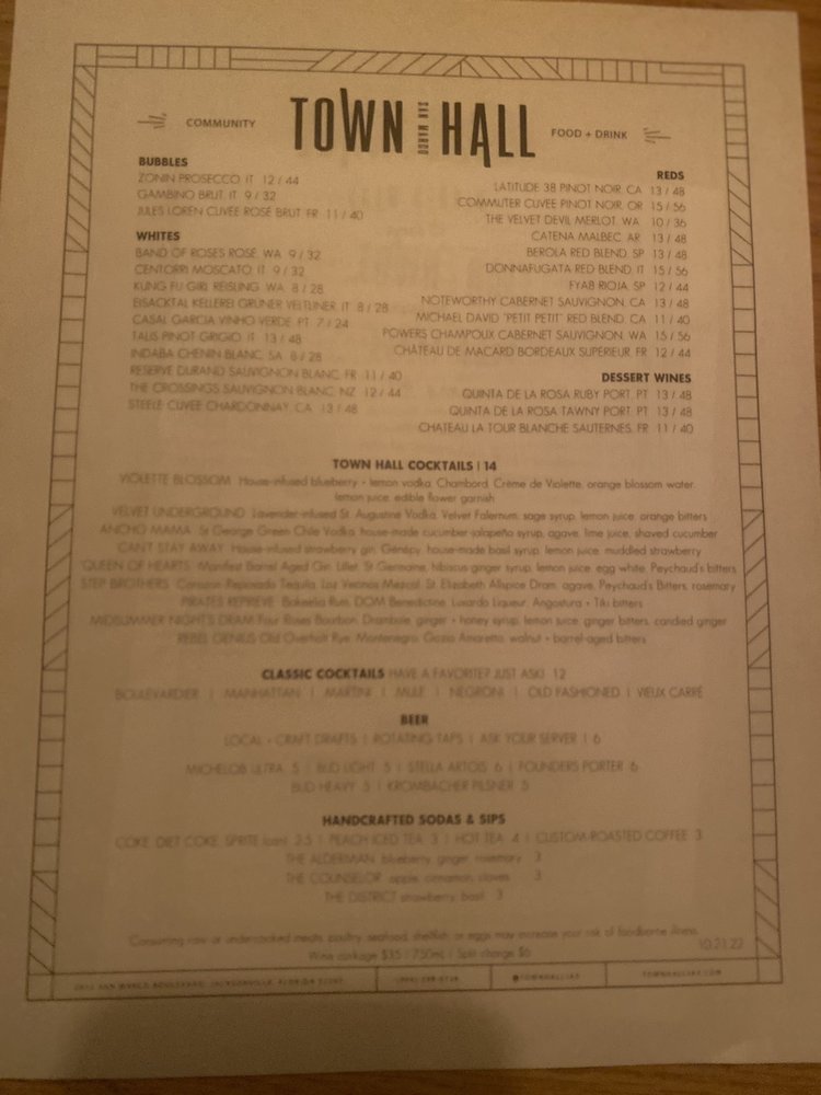 Welcome to Town Hall Restaurant Jacksonville, a gem located in the vibrant San Marco neighborhood. This New American eatery boasts a diverse and enticing menu that promises a true culinary adventure. From the moment you step inside, you'll be enveloped in a warm, classy atmosphere, perfect for casual dining or special occasions.